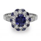 1.45ct Oval Sapphire Diamond Halo 18K Gold Ring
