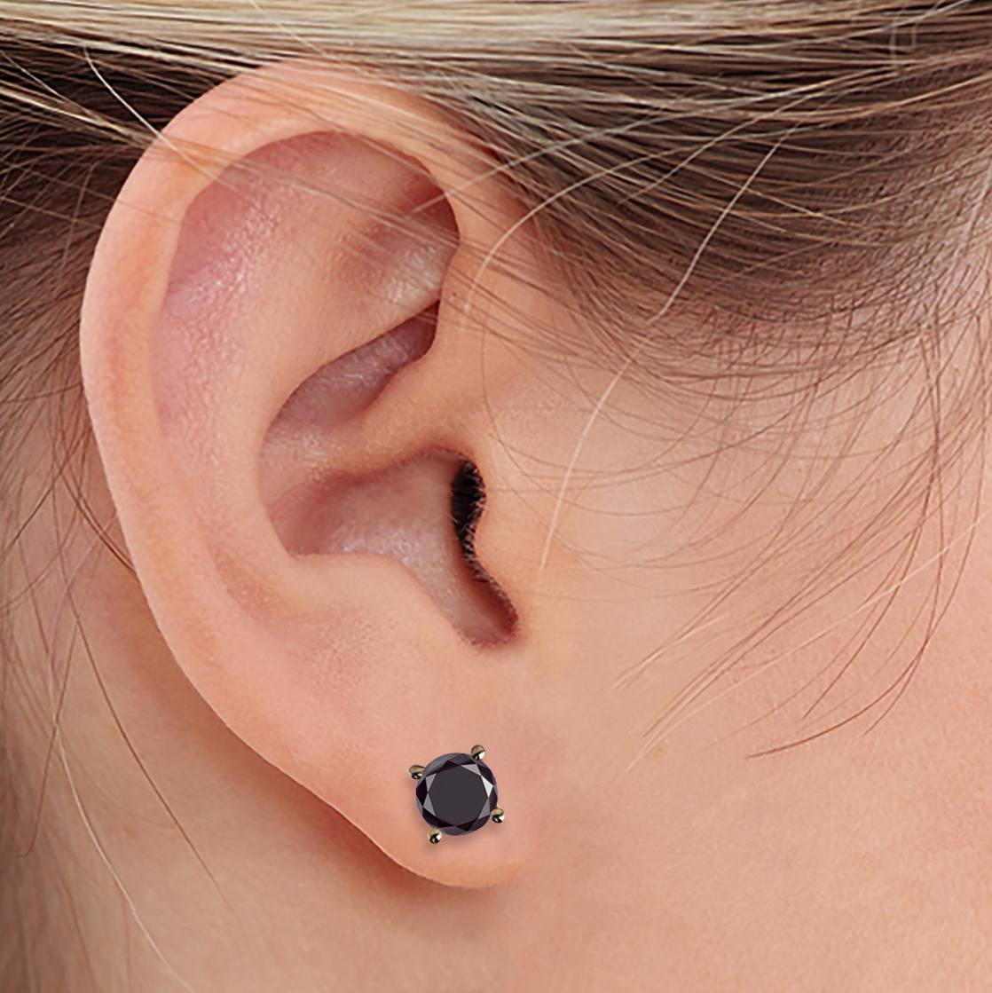 These stunning 18K Gold earrings feature a perfectly matched pair of 1ct. AAA Round Brilliant Cut Black Diamonds.