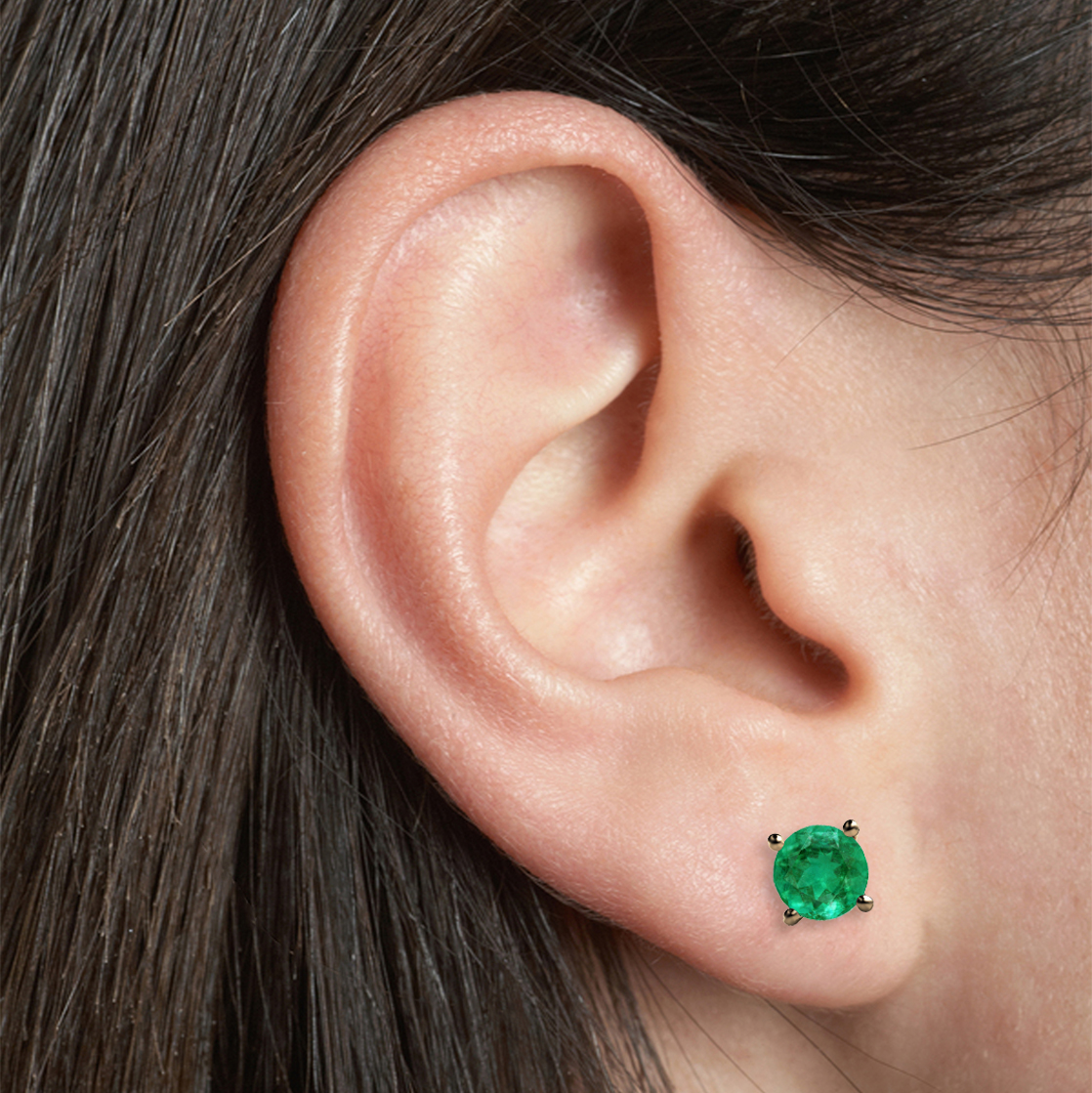 These gorgeous Platinum 950 earrings feature a perfectly matched pair of 1ct. Round Faceted Emeralds, personally selected by Julia Pharo and set with meticulous attention to detail.