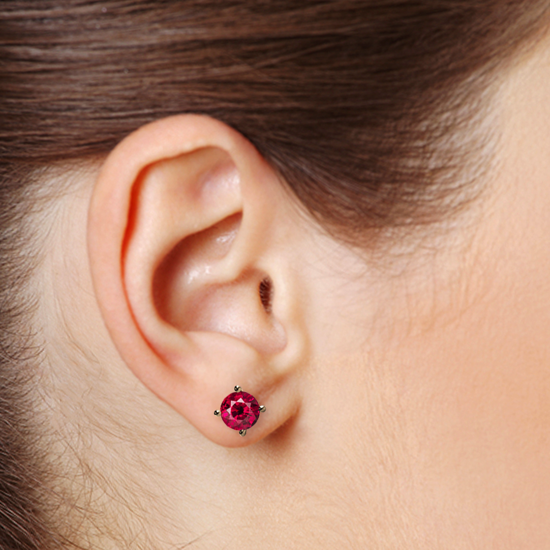 These gorgeous 18K Gold earrings feature a perfectly matched pair of 1ct. AAA Round Rubies, personally selected by Julia Pharo and set with meticulous attention to detail.