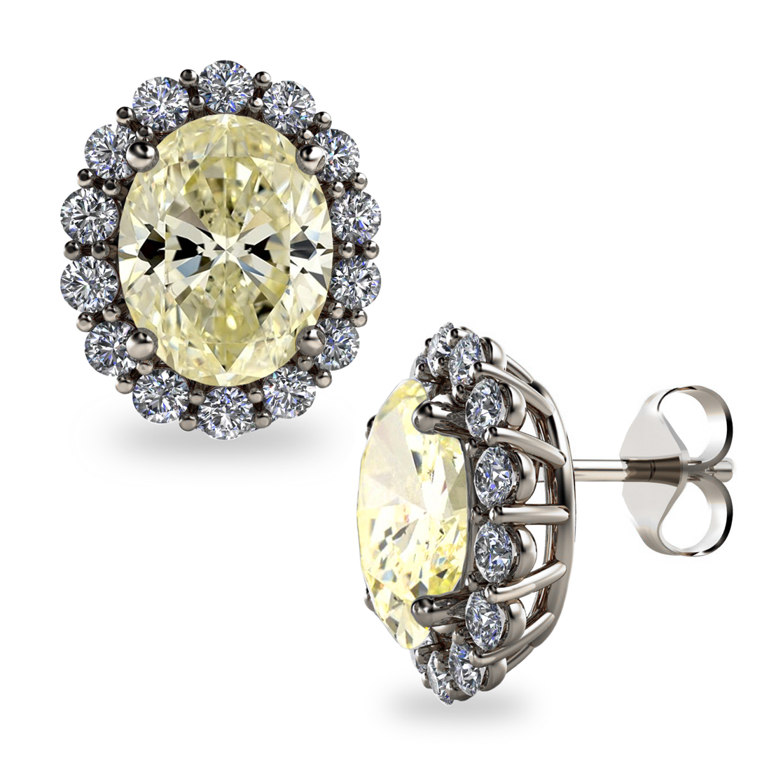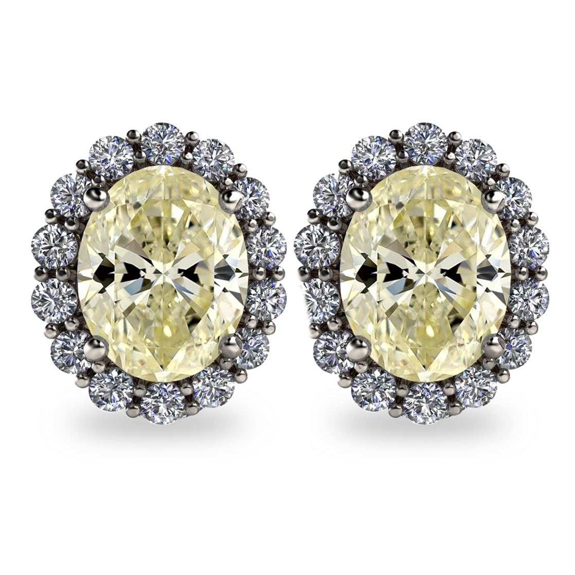 3ct Oval Cut Fancy Intense Yellow Diamond Platinum 950 Diamond Cluster Earrings