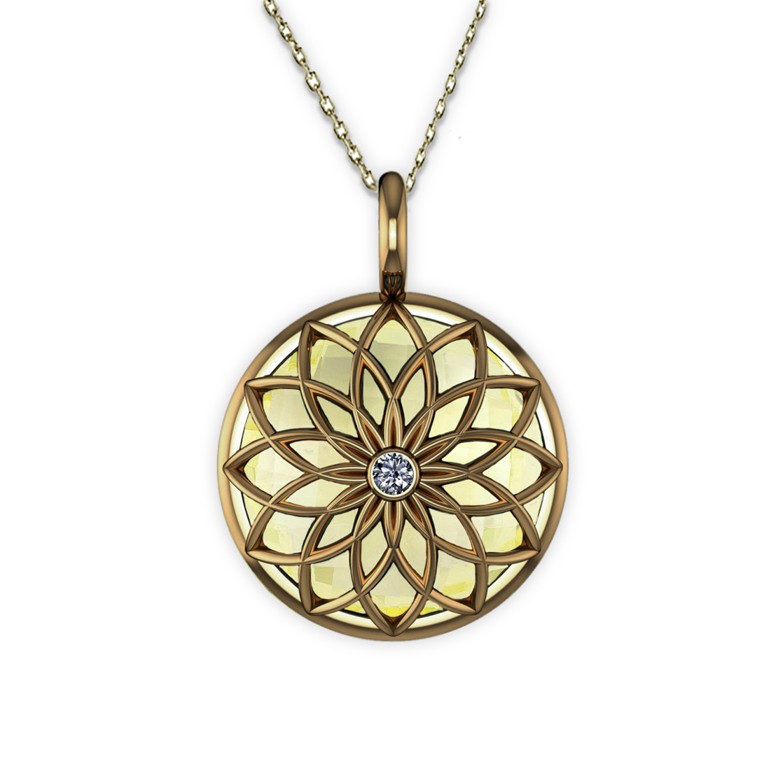 ENRAPTURED LEMON QUARTZ YELLOW GOLD PENDANT