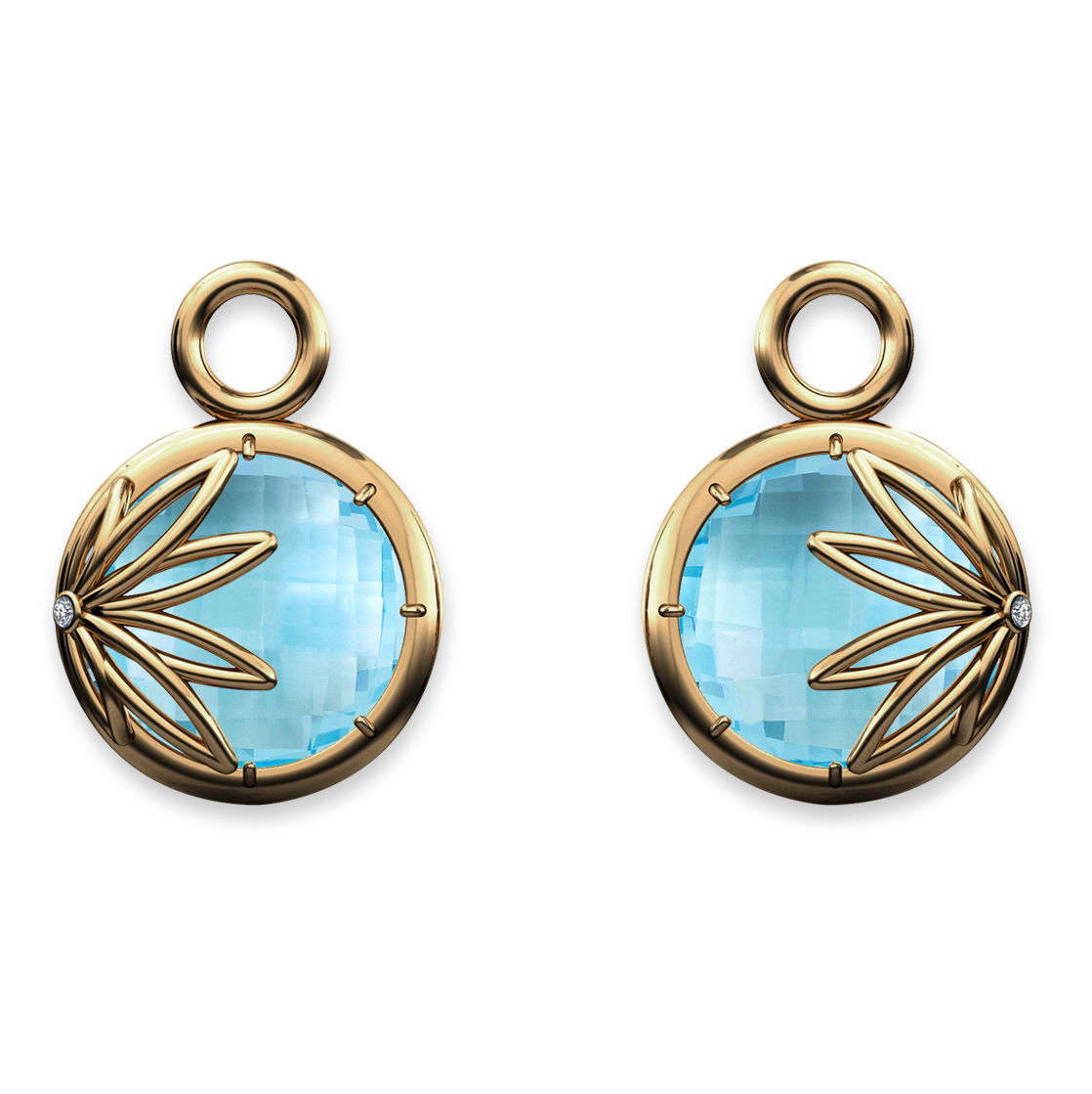 Fully reversible, this Sky Blue Topaz amulet may be worn “Protéger” with the gemstone fully captured in a web of 18K Gold reflecting the gemstone’s energy to the wearer, or “Émettre”, the gemstone only lightly veiled in 18K gold to radiate its energy to others.