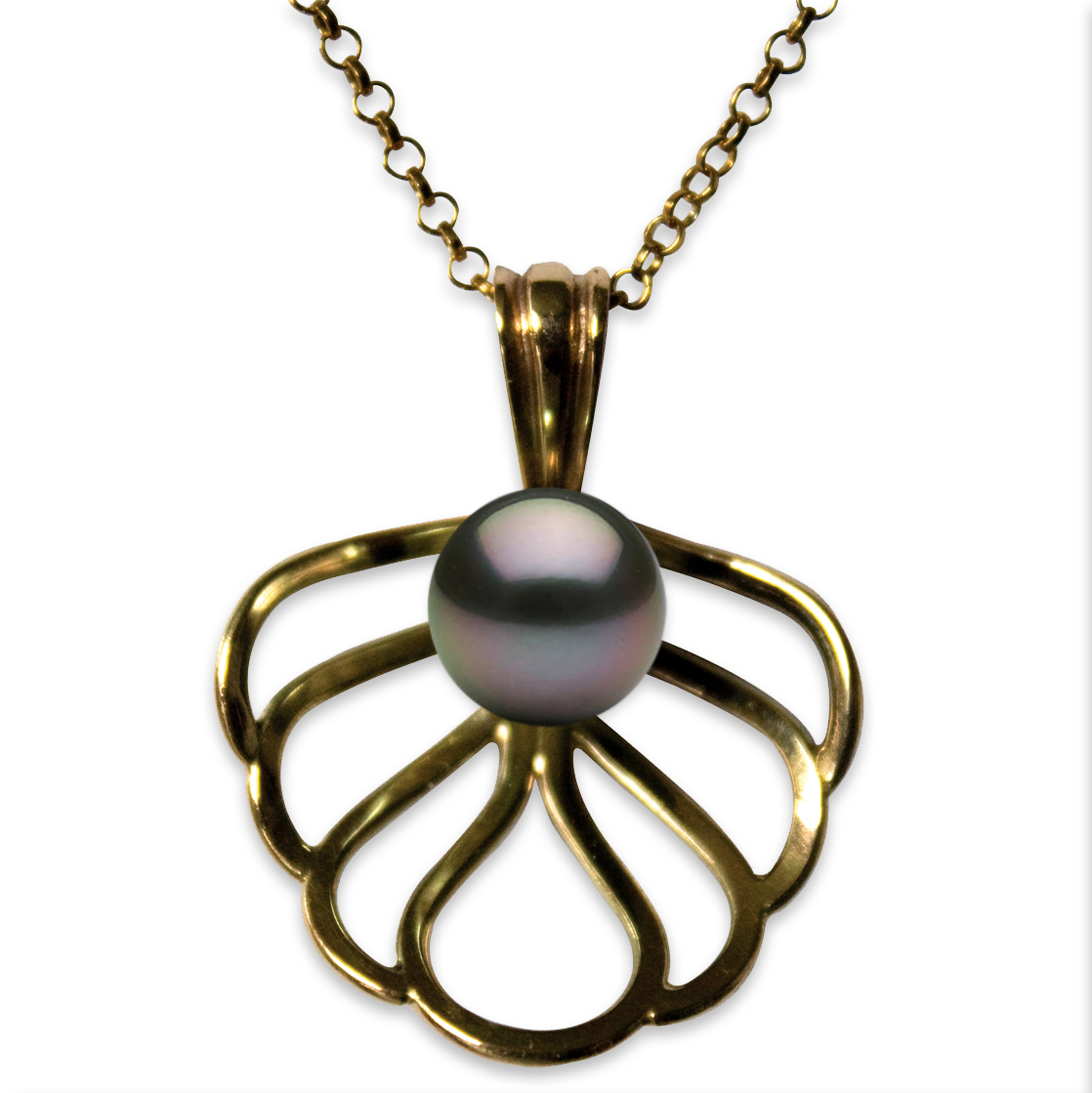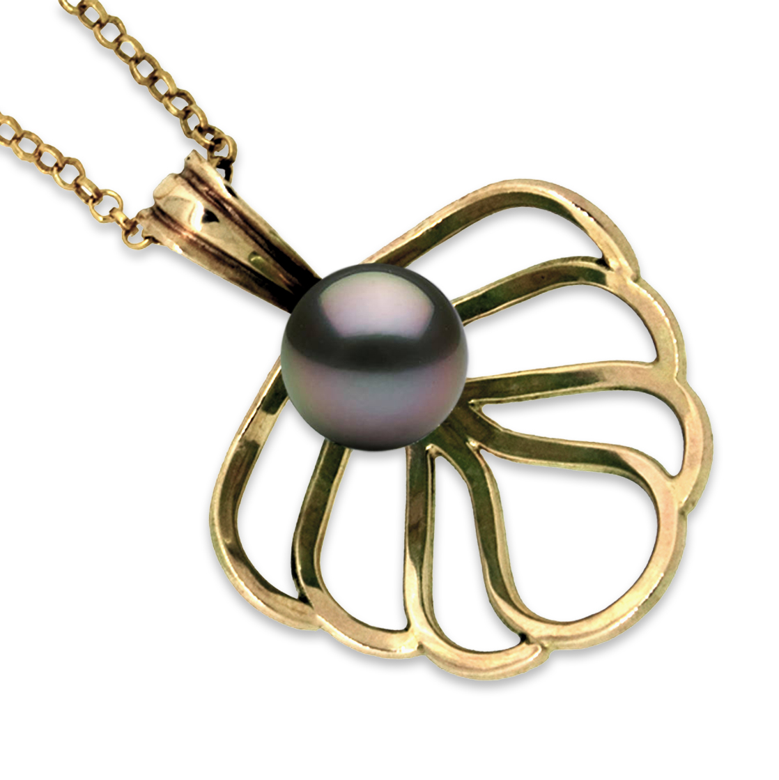 A stunning 8.5mm Cultured Tahitian Pearl is illuminated by the soft glow of this substantial 18K Gold pendant, available in your choice of Yellow Gold, Rose Gold or White Gold.