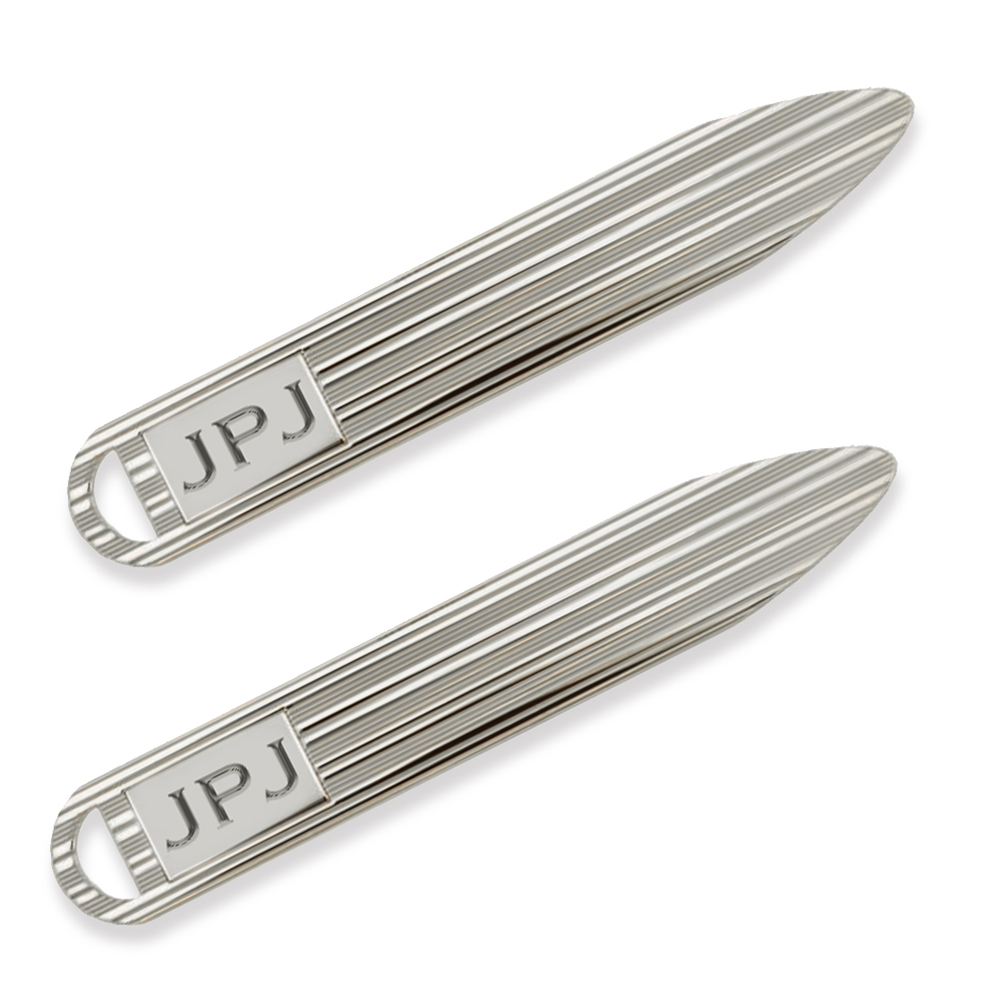 These impressive collar stiffeners are made from 925 Sterling Silver and may be hand engraved with up to three initials. Simply let us know on checkout.