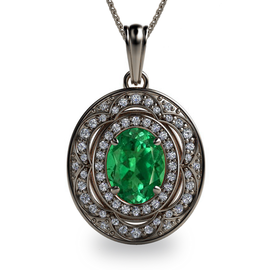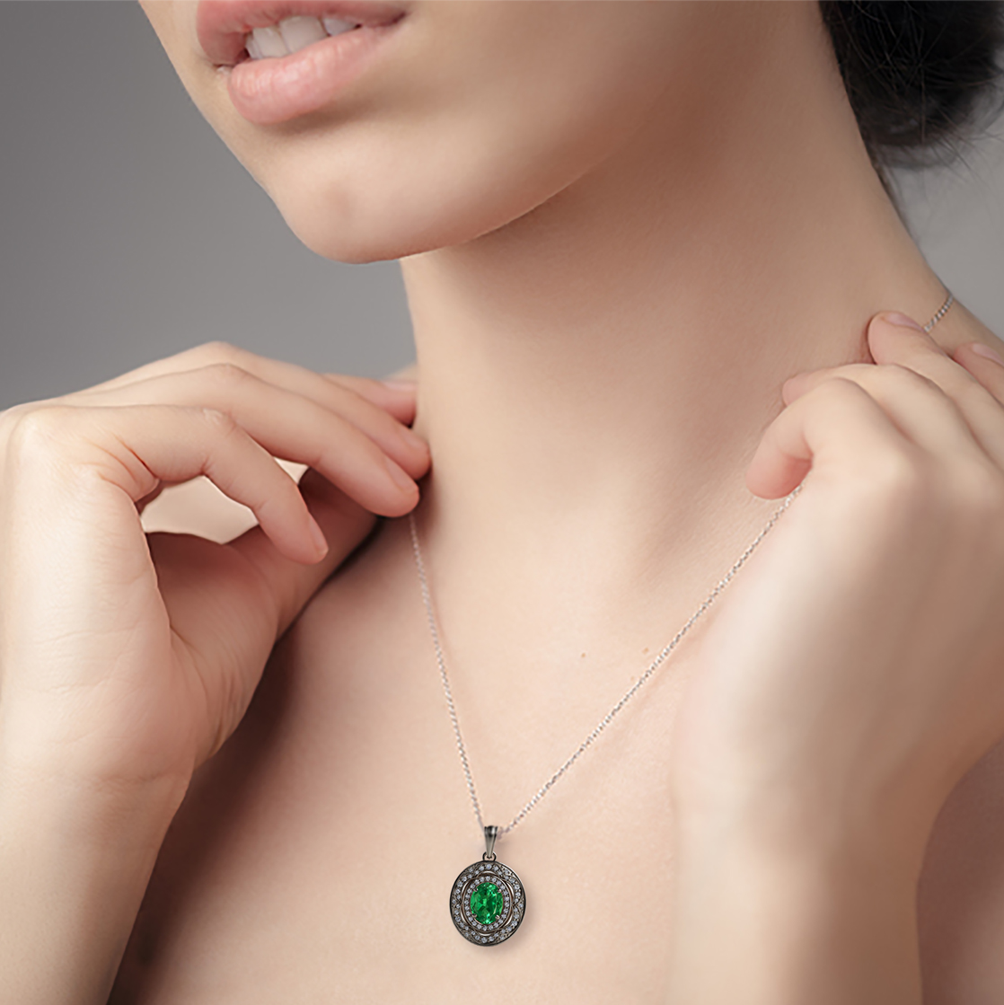 Featuring a single 2ct. Tsavorite set in brightly polished Platinum 950 pendant with a double halo of 62 Round Brilliant Cut Diamonds (Colour: F; Clarity: VS1, 0.33ct. tw).