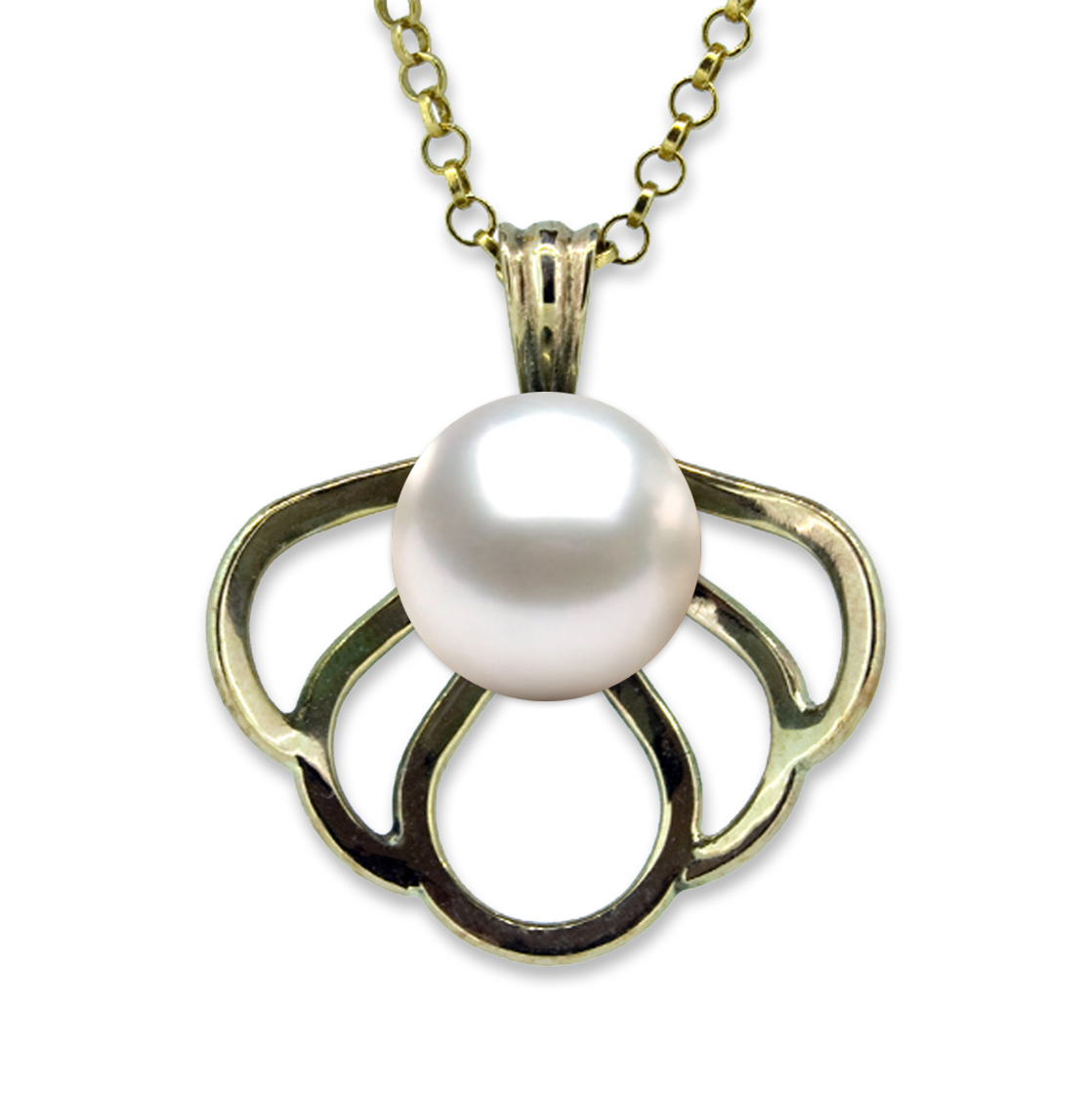 A stunning 9mm Cultured White South Sea Pearl is illuimnated by the soft glow of this stunning 18K Gold pendant, available in your choice of Yellow Gold, Rose Gold or White Gold.
